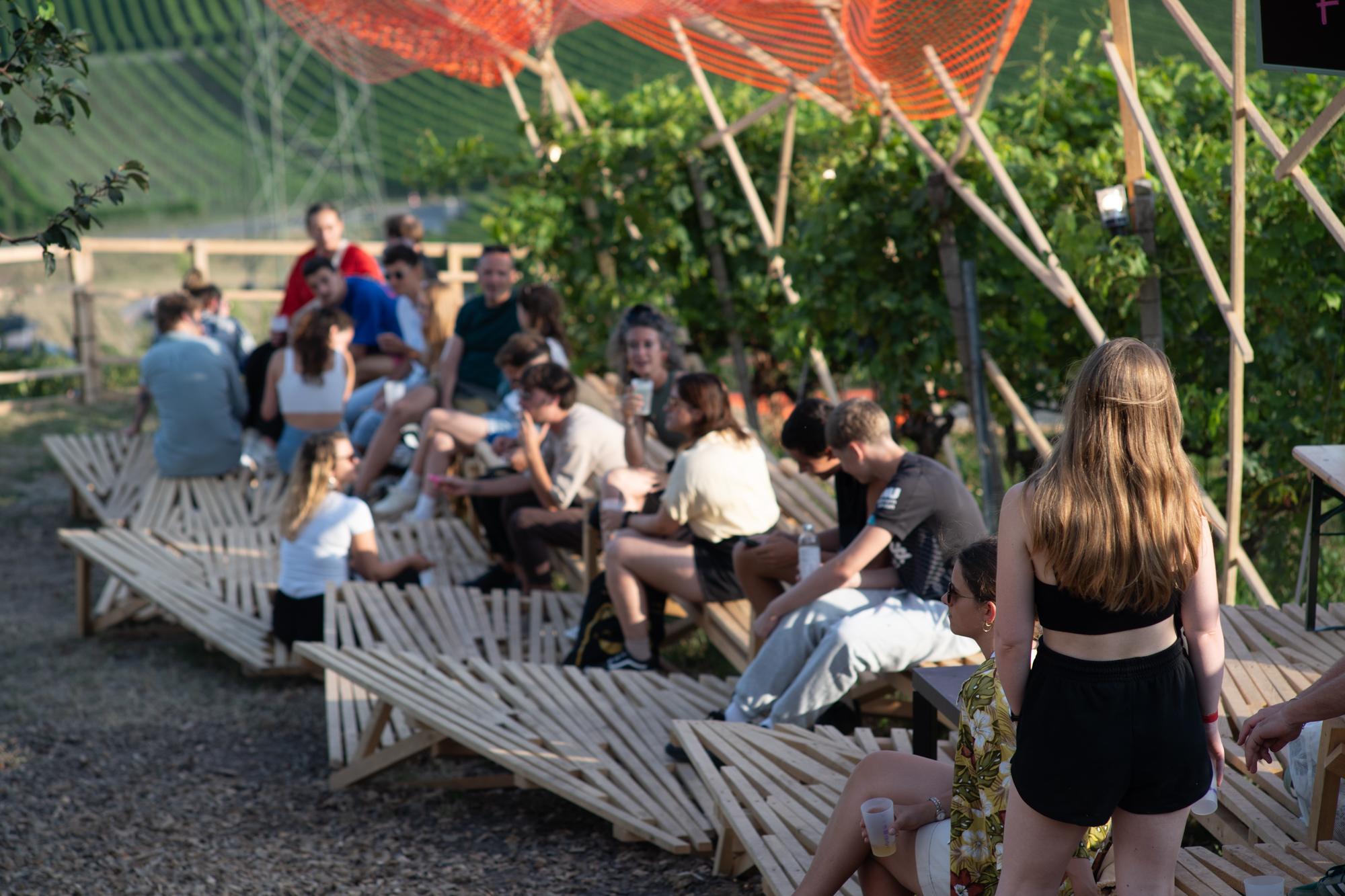 Teintées de couleurs estivales, ces lignes sinueuses évoquent aussi les vibrations sonores qui s’emparent de tout un village, le temps d’un festival. La topographie devient mélodie et le paysage un écrin indissociable du JVAL Openair.