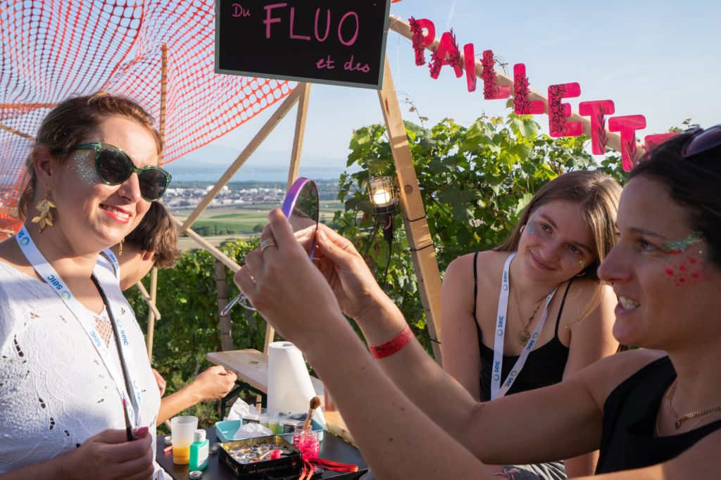À la fois graphique et topographique, cette affiche célèbre l’ancrage local et l’histoire de la manifestation. Inspirée des courbes de niveau de la région, elle rend hommage au relief unique du lieu où tout a commencé, au milieu des vignes de Begnins.