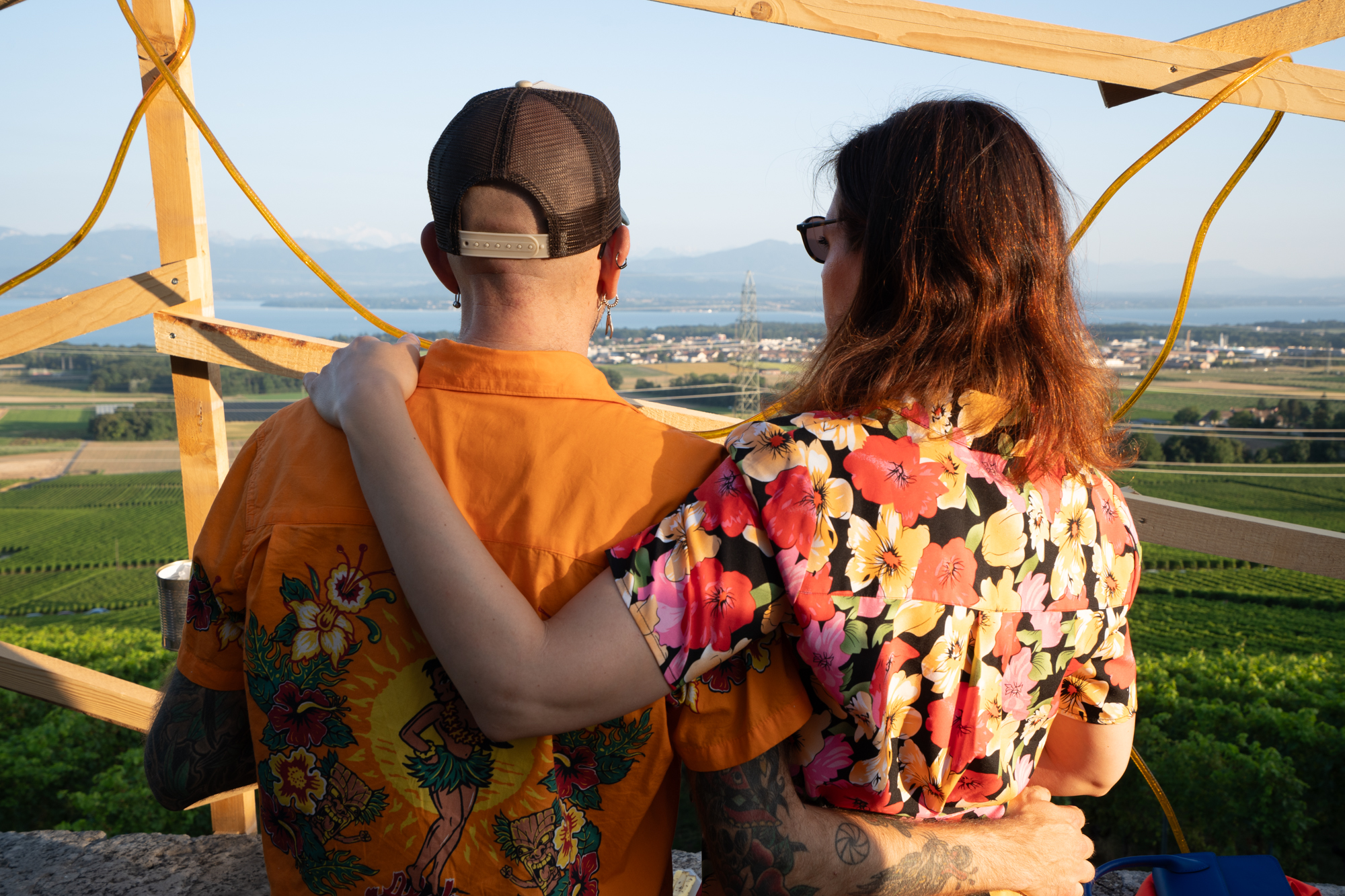 À la fois graphique et topographique, cette affiche célèbre l’ancrage local et l’histoire de la manifestation. Inspirée des courbes de niveau de la région, elle rend hommage au relief unique du lieu où tout a commencé, au milieu des vignes de Begnins.